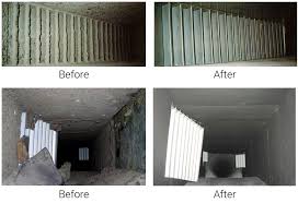 Fiberglass material is commonly used to line the internal surfaces of duct work and air handling units. Over time, this material is often subject to microbial contamination, air erosion and general deterioration. Midwest offers various solutions including replacement with new insulation, replacement with a durable polymer foam liner, or the application of a repair coating to the existing insulation. Application of coating material is often the most cost-effective method, providing a new/enhanced air stream and locking down loose and deteriorated fibers. All coating products utilized are EPA registered and contain an anti-microbial agent that retards the growth of microbial contamination. Midwest’s other services include scheduled coil cleaning, dryer and industrial exhaust cleaning, industrial ceiling/high structure cleaning and the restoration of rusted and deteriorated air handler drain pans. We have assisted many engineers and consultants in the development of specifications, and we work closely with the insurance and fire restoration industry when HVAC systems have incurred fire, smoke and water damage.