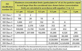 Class 1 cleanrooms have one or fewer particles per 0.5 micrometer cubed area. Class 10 cleanrooms have 10 or fewer particles per 0.5 micrometer cubed area. Ascending class grades rise by a factor of 10. Because people often work in cleanrooms, they are required to follow dress and behavior guidelines to limit the amount of particles they will bring into a cleanroom or particles they will shed while working in the environment.