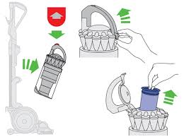Lift off the cover and turn the filter one-quarter anti-clockwise to release. Step 3 - Washing the filters Wash both filters in cold water only (please do not use detergent, do not wash in a dishwasher or washing machine). Repeat the steps shown below until the water runs clear. Filter B should be rinsed and tapped out until the water runs clear, then tapped out again to ensure all excess water is removed. This will normally require up to 10 rinses. Step 4 - Drying the filters Ensure you lay Filter A Horizontally to dry Leave the filter to dry in a warm place for 24 hours, until completely dry. NB: Do not dry the filter in a tumble dryer, microwave or near a naked flame. Step 5 - Replacing the filters When the filters are completely dry replace Filter A back into the cyclone. To refit Filter B, push the filter into the ball housing and secure the filter by turning it one quarter-turn clockwise. When refitting the outer cover of the ball, keep turning the central locking dial clockwise until it clicks.