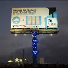 the engineering department wanted a way to attract more engineering students to the university. They went to Peruvian ad agency Mayo Publicidad, and the partnership of engineers and marketers crafted an advertisement that would provide a very visible demonstration of the university's engineering projects. The water-collecting billboard was born.Electricity from the city's power lines runs the five condensers inside the billboard. Like the condenser in your home air conditioner, the ones in the UTEC billboard are cooler than the air outside. When air contacts the cooled surfaces of the condensers, the air also cools, and the water vapor in the air condenses into liquid water. After reverse-osmosis purification, the water flows down into a 20-liter storage tank at the base of the billboard. The billboard generates about 96 liters of water each day, and a simple faucet gives local residents access to the water. UTEC has not yet announced whether the water will be available for free, but the billboard reportedly cost only about $1200 to install.