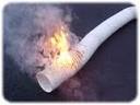 The flexible material from the Dryer Unit to the wall is blown out and cleaned along with the dryer venting. Our special pneumatic tools have the ability to remove all kinds of blockages. ASK about Bird Guards! Tired of birds or rodents getting into your dryer vents & bathroom exhaust vents? Mite-E-Ducts has the solution. A bird guard will help protect your dryer vent hoods and bathroom exhaust hoods from birds and rodents! Call today for more information or request a FREE ESTIMATE *All of our Dryer Exhaust Technicians are C-DET certified. Mite-E-Ducts was featured on WISH-TV for Dryer Vent Cleaning Don’t Let This Happen To You! This demonstration shows what happens when the highly flammable lint ignites. On the top right you see how flammable and unsafe the White Vinyl is. Can you afford to have it in your home? The Consumer Product Safety Commission estimates that over 15,500 dryer related fires occur each year and this number is rising at an alarming rate.