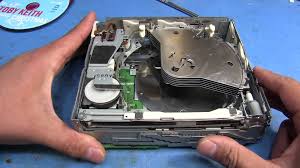 CD Player Repair The compact disc player, or CD player, was the first major entertainment appliance to used digital technology. This Fix-It Guide on CD player repair tells how a CD player works, what often goes wrong, how to identify a CD player problem, and what parts and tools you will need to fix it. It then gives instructions for how to clean a CD, how to clean the CD player lens, how to service the disc tray and belt of a single-play unit, and how to service the CD player tray motor. Some of these repairs also apply to CD burner repair.How Does a CD Player Work?A CD player is an electronic device powered by a universal motor that rotates a flat plastic disc that has been stamped with a digital code representing specific sounds. As the player rotates the CD at high speed the sound track–less than the width of a human hair–is read by a laser beam used to produce an electric stereo sound signal. This signal goes to an amplifier and speakers or earphones to reproduce the music represented on the CD.