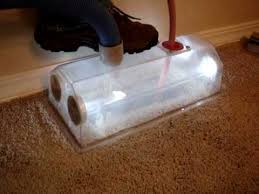 The other method is negative air cleaning or the "push-pull method". This method of duct cleaning involves putting the air system under negative pressure, agitating the debris inside the ducts and collecting it in one place. Both methods are recognized and accepted by the National Air Duct Cleaner�s Association. RamAir is unique in that it applies both methods at the same time. While nearly all other duct cleaning systems require that the air handler (furnace) fan is turned off during the cleaning, the RamAir system utilizes this powerful airflow in it�s cleaning. While the air handler is pushing air at up to 2,500+* through the duct, our blasting ball scours the sides of the duct as it directs the loosened dust/debris toward the register opening. As the dust and debris exits the duct opening, it is visible to the client and technician through the ClearView Vacuum Box right before it enters the vacuum system. Since much of the air movement is supplied by the air handler and air compressor, the vacuum source can vary from a high-quality shop vac to a truck-mounted vacuum (such as those used in the carpet cleaning industry).