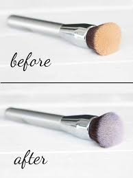How To Clean Makeup Brushes A task often overlooked, cleaning your makeup brush is an easy way to promote healthy skin by keeping bacteria and dead skin cells at bay. This two-minute task is easy, and can even prolong the life of your makeup brush. Castile soap or organic baby shampoo Glass or small bowl Clean cloth or paper towel 1. Whether or not your brush looks clean, the bristles are porous and are more than likely harboring bacteria and oils that you won't want on your face. Before mixing the solution, wipe your brush off with a dry cloth. You'll be surprised how much makeup you can remove with this simple step. 2. Add a few drops of castile soap or baby shampoo to a bowl of warm water. I used Dr. Bronner's unscented baby-mild castile soap which is fragrance free and contains double the amount of olive oil, perfect for my sensitive skin. At this point you can also add hydrogen peroxide to the solution as an anti-bacterial. 3. Gently swish the brush around in the mixture.